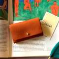 コロンとした丸い金具(バレット)と少し長めのフラップの組み合わせが、なんとも愛らしい表情の名刺入れです。