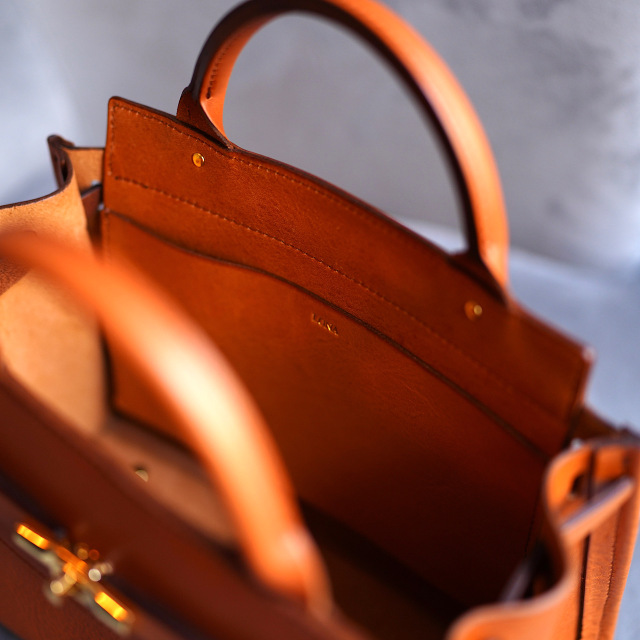 使う人に寄り添いながらも、高級感のある金具で、持つたびに少し背筋がシャンとするような鞄です。