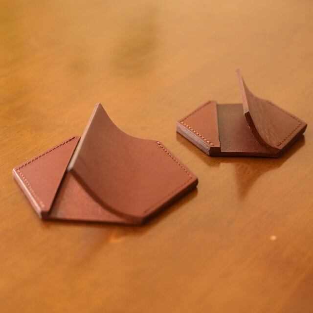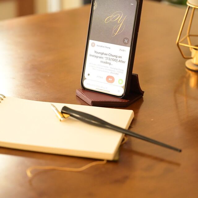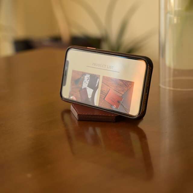 革の厚みでしっかり支える、レザースマホスタンド。
