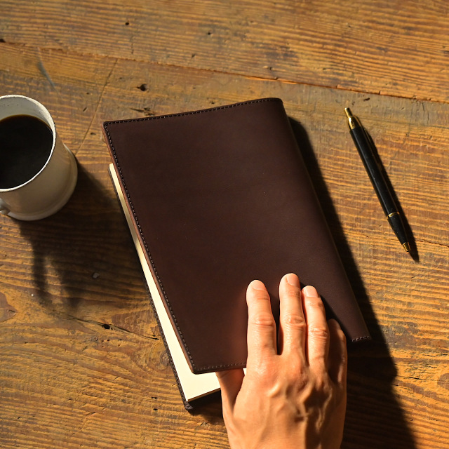 ブックカバーは、革の良さを最大限に引き出す至ってシンプルな作り。