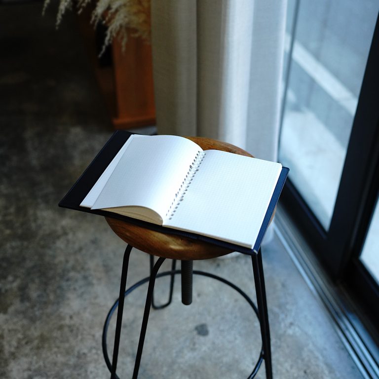 ざっくり説明すると、この型にテープみたいなものを貼って、それに書いて、剥がしてまた紙に起こす作業です。